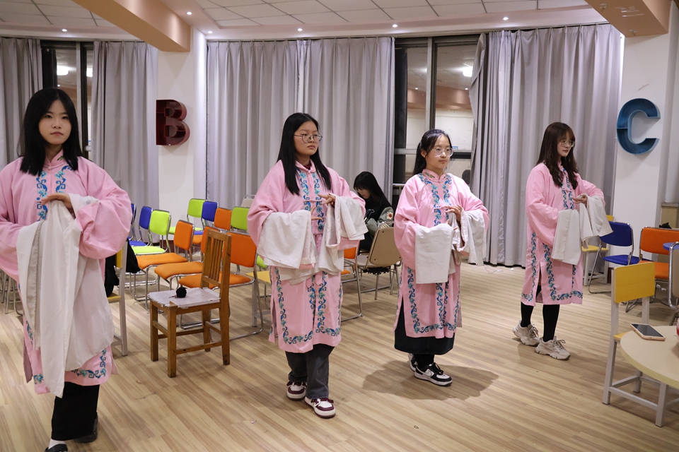 为了让同学们都能一展所长,齐老师精心编排了节目内容。“学生有会葫芦丝的,我就安排表演一个紫竹调,有会跳传统舞的,就安排他伴舞给霸王别姬唱段舞剑。既有群演又有独演,节日形式丰富有新意,同学们特别积极地参与其中。”齐老师欣慰地说。