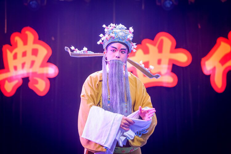 学生在传统文化艺术节上表演京剧